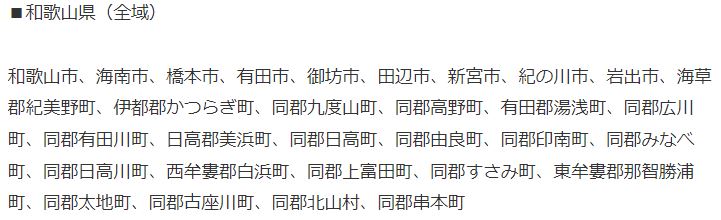 와카야마현 역시 전체 지역이 피해 예상 지역으로 지정되었어요.