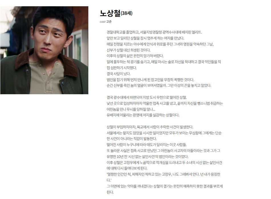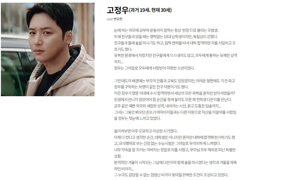 주인공인 변요한씨가 담당하는 '고정우'役에 대한 설명이네요