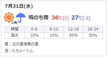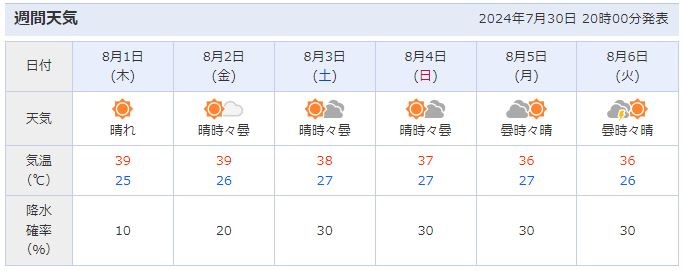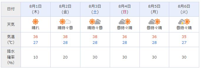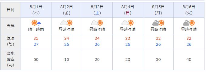 2. 8월 1일(목요일) ~ 8월 6일(화요일) 도쿄 날씨